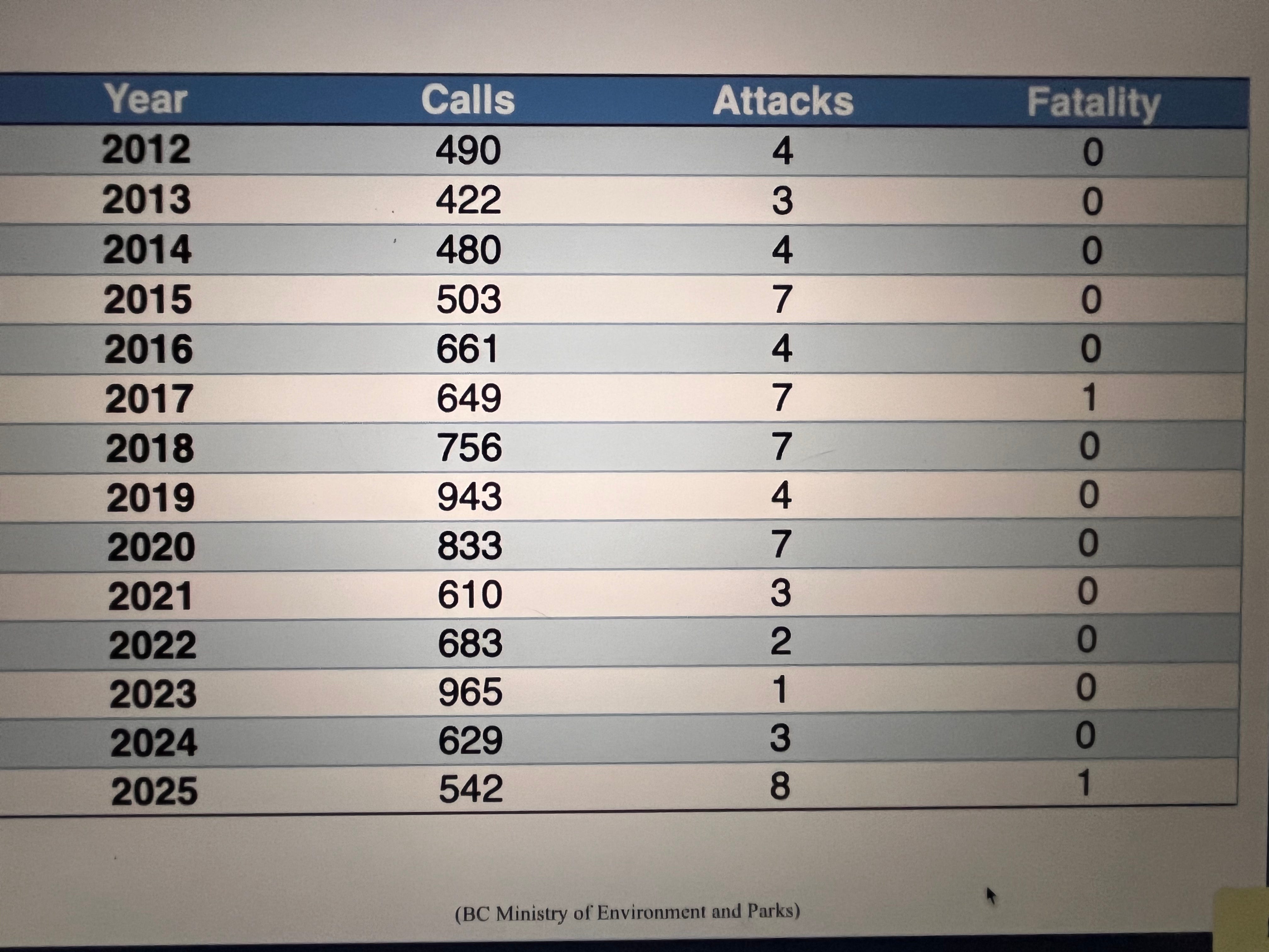 The BCWF goes on to report that since the 2017 hunting ban on grizzlies, calls to the Conservation Officer Service regarding human/grizzly conflicts have doubled to nearly 1000 annually in BC. But have they really? In a November 25, 2025 article by Larry Pynn published by Six Mountains, an online investigative publication based in the Cowichan Valley, entitled, Government stats refute organization’s claim re. public complaints related to grizzly bears, revealed that the BCWF is misrepresenting the statistics. Since the 2017 hunting ban, there have been only two years where calls approached 1000 - 965 in 2023 and 943 in 2019. In 2021, the number of calls annually was only 610 which was less than the total number in 2016 and 2017 prior to the hunting ban. The BCWF also neglected to point out that the nature and seriousness of the conflicts can range from mere sightings to actual attacks. As Pynn’s article details, “Conservation officers respond to only a fraction of reported calls. For example, in June this year the province received 130 calls regarding grizzlies, and responded to 20 of those.”